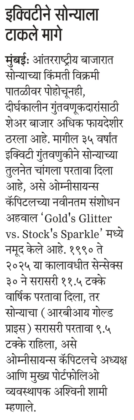 दीर्घकाल में इक्विटी ने सोने को पछाड़ा : ओम्नीसायंस कैपिटल रिपोर्ट