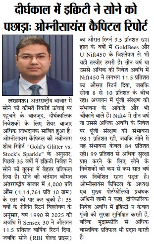 दीर्घकाल में इक्विटी ने सोने को पछाड़ा: ओम्नीसायंस कैपिटल रिपोर्ट