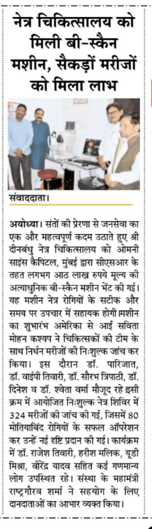 नेत्र चिकित्सालय को मिली बी-स्कैन मशीन, सैकड़ों मरीजों को मिला लाभ