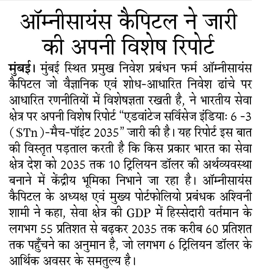 ऑम्निसाइंस कैपिटल ने जारी की अपनी विशेष रिपोर्ट