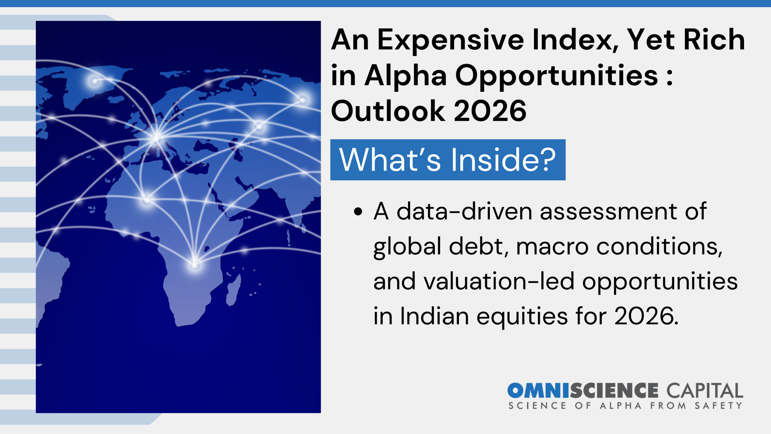 As we assess the outlook for Indian markets in 2026, this report applies the Scientific Investing Framework to separate macro noise from investment-relevant signals. We examine global and Indian debt dynamics across governments, corporates, and households, alongside growth, inflation, and interest-rate expectations for the US and India. Against this backdrop, we evaluate Indian equity earnings growth and valuation multiples to understand potential market returns. While global debt levels warrant long-term caution, near-term system stability remains intact. Our analysis highlights how selective valuation dispersion within Indian equities creates meaningful opportunities for active investors, even in an environment of elevated headline market valuations.