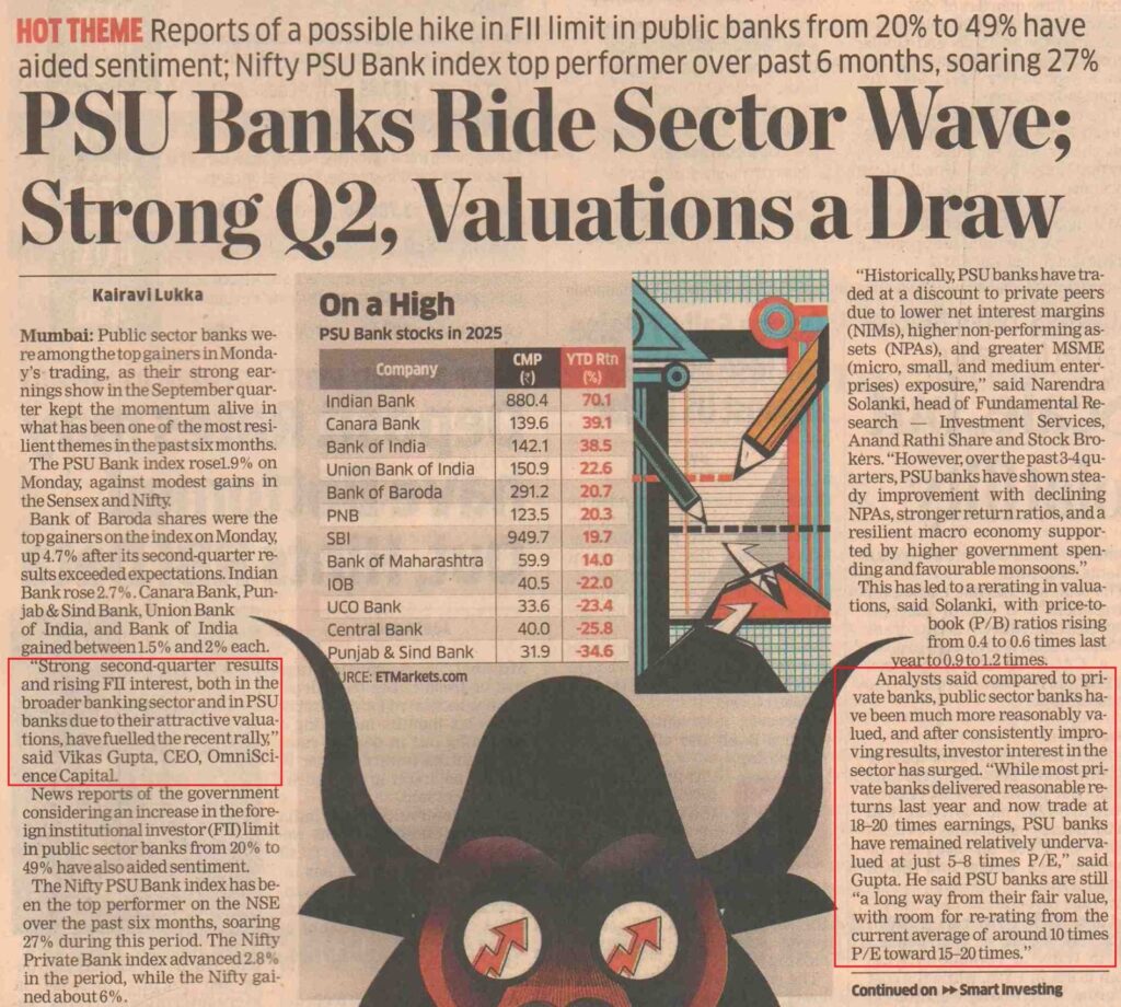 PSU Banks Ride Sector Wave; Strong Q2, Valuations a Draw