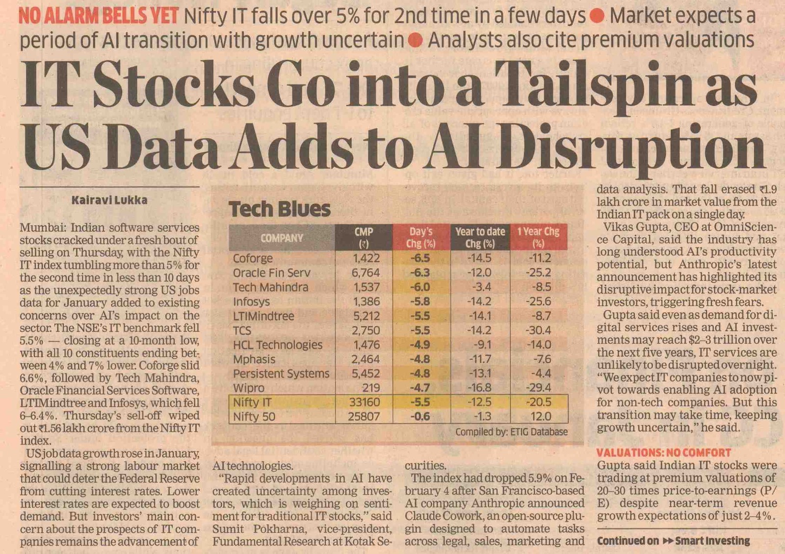 IT Stocks Slide on US Data, AI Fears