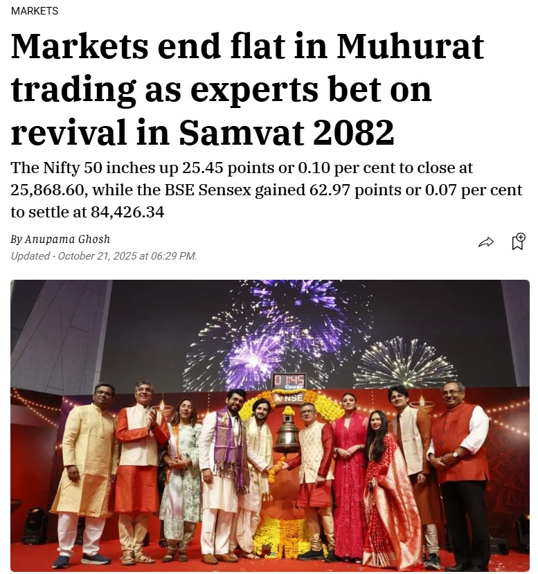 Markets end flat in Muhurat trading as experts bet on revival in Samvat 2082