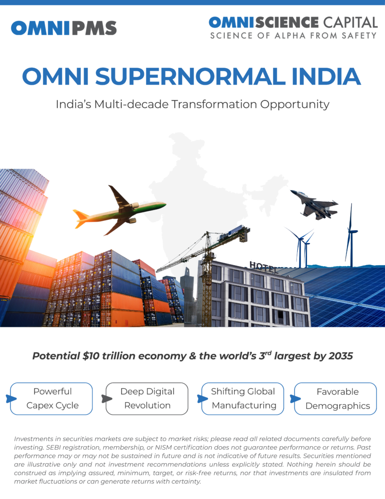 Omni’s forward-looking PMS strategies focused on the sectors shaping India’s next decade. Omni Inevitables capture long-term growth across financialization, infrastructure, sustainability, and technology—the engines of tomorrow’s India.
