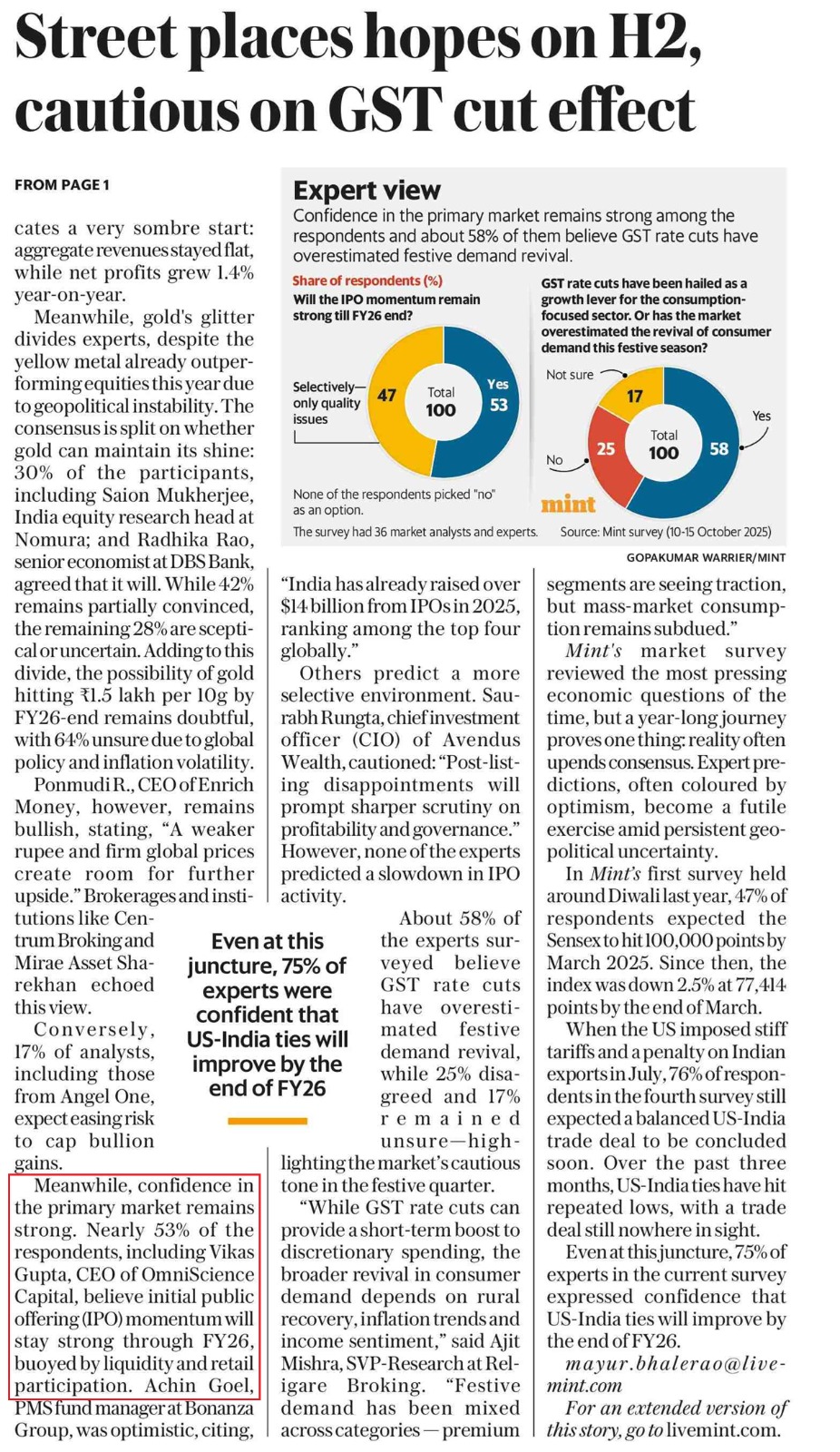 Street places hopes on H2 cautious on GST cut effect